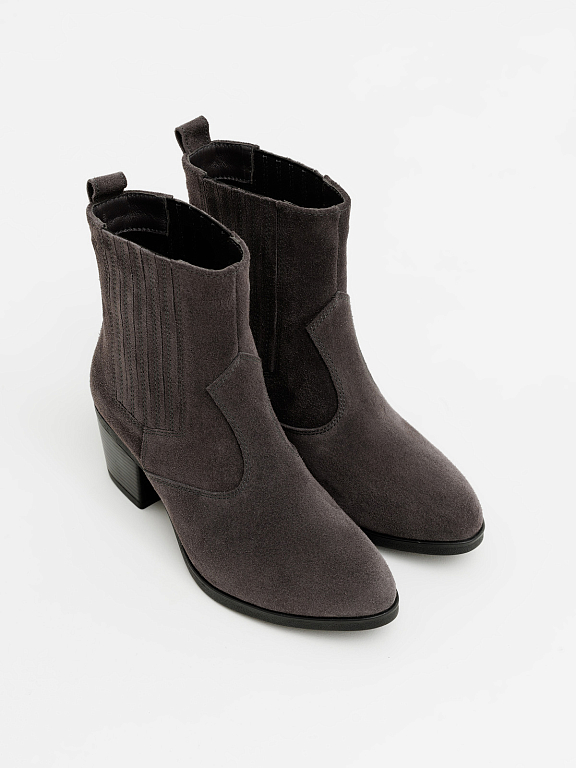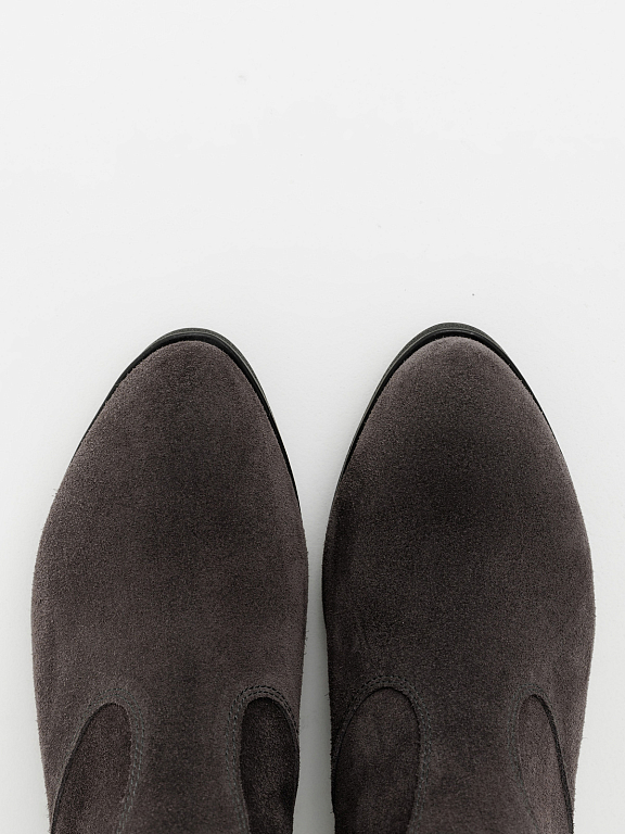 Материал: 100% натуральная замша Материал подклада: байка/шерсть (на выбор) Высота ботинка (без учета подошвы): 15 см Высота подошвы: 1 см Высота каблука: 6 см Сезон: демисезонные (от +10 до-15)/ зима до -30°С