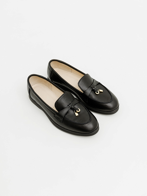 Элегантные лоферы с навесным украшением — это баланс между классикой и современной стилистикой. Актуальный силуэт легко впишется как в деловой гардероб, так и в повседневные образы. Модель выполнена из натуральных материалов и обеспечивает комфорт в течение всего дня. Деталь-украшение придаёт образу завершённость и индивидуальность.
