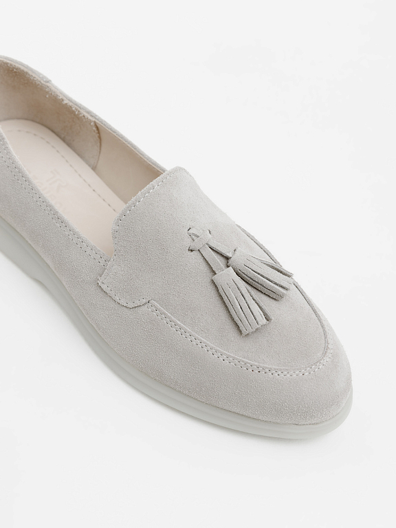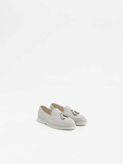 Классические лоферы с декоративной кисточкой — вечный элемент в гардеробе, который легко впишется в современные образы. Модель выполнена из натуральной замши, отличается комфортной посадкой и гибкой подошвой для ежедневной носки. Деталь в виде кисточек добавляет акцент, оставаясь при этом в рамках минималистичного дизайна. Отличный выбор для тех, кто ценит стиль, удобство и универсальность. Идеально сочетаются с костюмами, джинсами, юбками и платьями. |