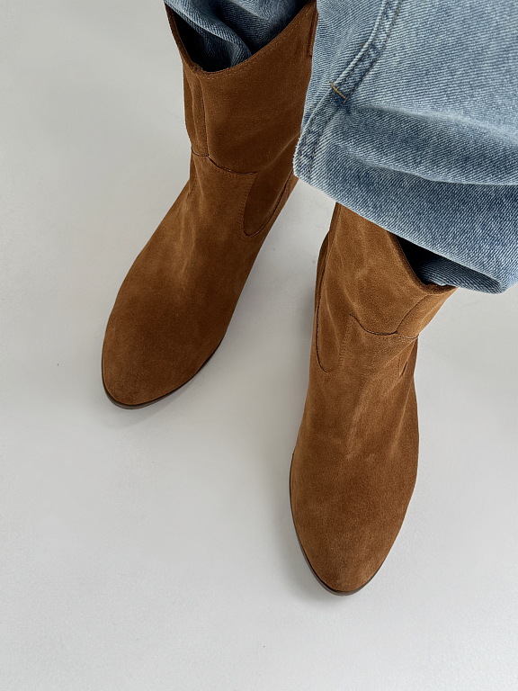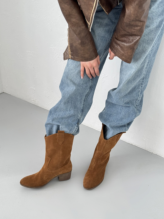 Полусапоги в стиле казаков — это универсальная пара, которая легко впишется в гардероб и подчеркнёт вашу индивидуальность. Характерный каблук, скошенный верх и мягкая натуральная замша создают гармоничный образ, в котором сочетаются актуальные тенденции и удобство на каждый день.